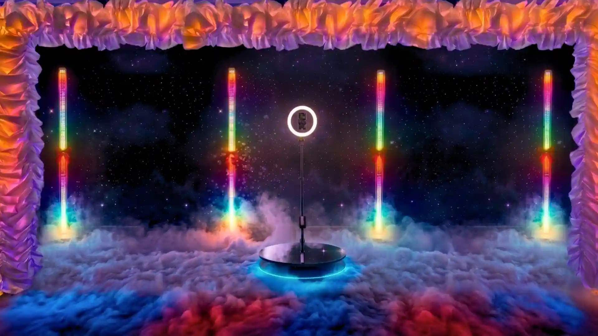 Kamera kręci się wokół Ciebie, rejestrując dynamiczne ujęcia. W tym samym czasie możesz tańczyć w ciężkim dymie lub profesjonalnych bańkach mydlanych, tworząc materiał, który wyróżni się w sieci.